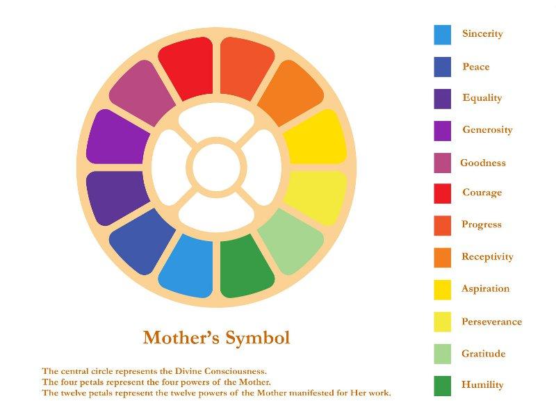 The twelve petals represent the twelve powersof the Mother manifested for Her Work.