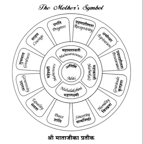 Do you happen to remember where I wrote the twelve attributes of the Mother (the symbol with twelve petals)? There's one, four, and twelve.